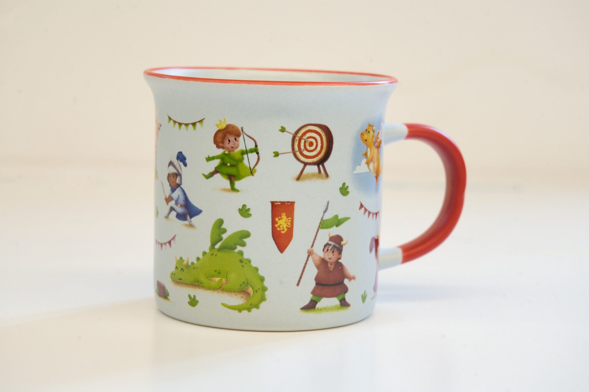 Porcelanowy kubek z baśniowymi postaciami.